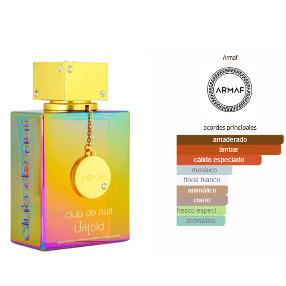 La fragancia Armaf Club de Nuit Untold es una verdadera declaración de poder y sofisticación, diseñada para quienes buscan una experiencia olfativa intensa y cautivadora, creando un balance perfecto entre lo fresco y lo cálido.