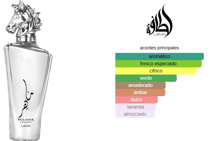 Inspirado en la leyenda olfativa Sedley de Parfums de Marly, Maahir Legacy de Lattafa es una obra maestra que fusiona frescura vibrante con profundidad oriental. Una fragancia Eau de Parfum creada para el hombre contemporáneo que busca equilibrio entre modernidad y tradición, ofreciendo un aroma fresco, especiado y amaderado que perdura con elegancia.